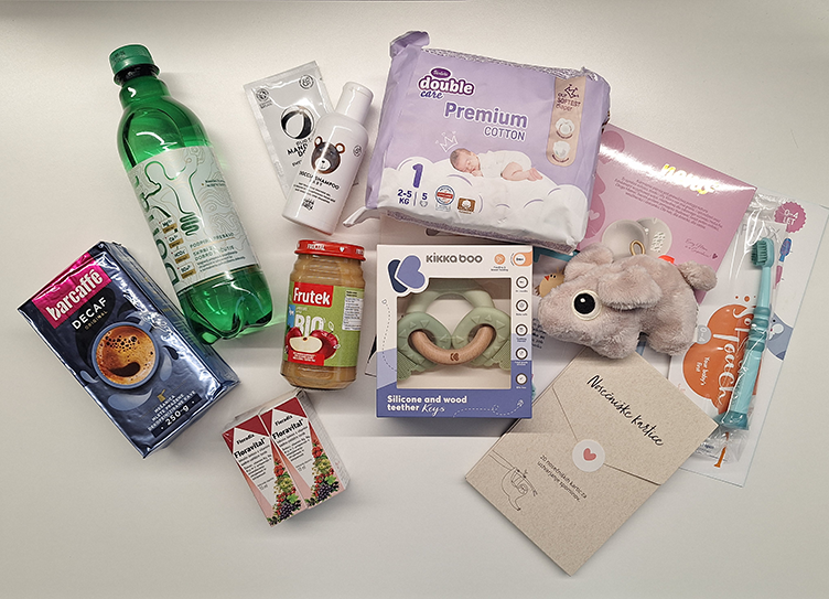 V paketku te čakajo tako izdelki za mamico – kot so prsne blazinice za dojenje in brezkofeinska kava – kot tudi pozornosti za dojenčka, med drugim plišasta živalica in grizalka. Pri vsakodnevni negi otroka pa ti bodo v pomoč tudi uporabni izdelki, kot sta šampon in zobna krtačka. A to še ni vse – verjamemo, da komaj čakaš pokukati v paketek in odkriti vse, kar se skriva v njem.